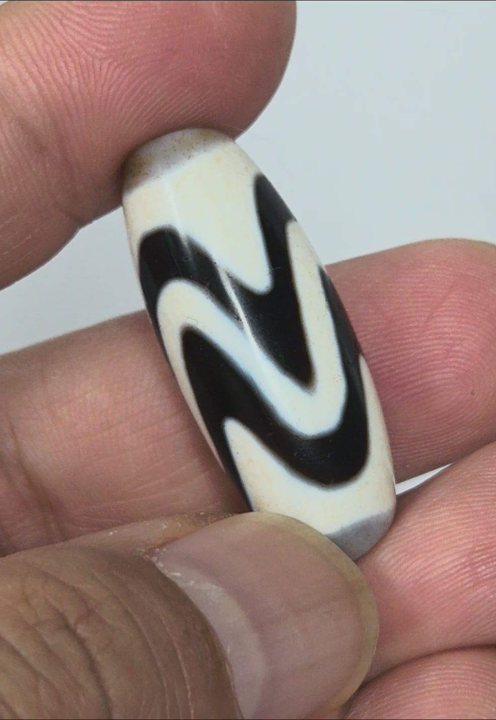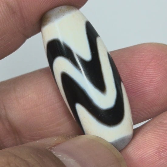 Ancient Tibetan Double Wave Dzi Bead with Extreme Bloodspots | 500–700 Years Old