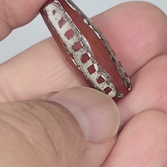 This bead measures 28.9 mm x 11.2 mm. It is an ancient bead, estimated to be between 500 to 1000 years old.