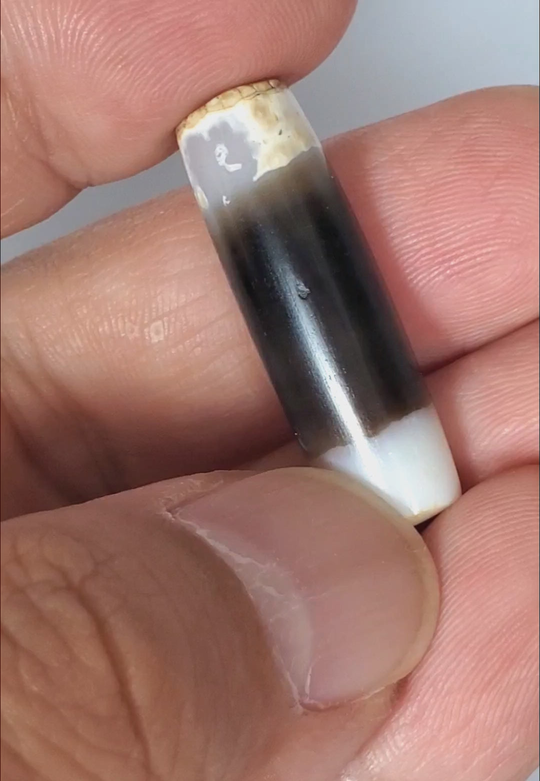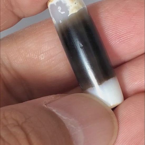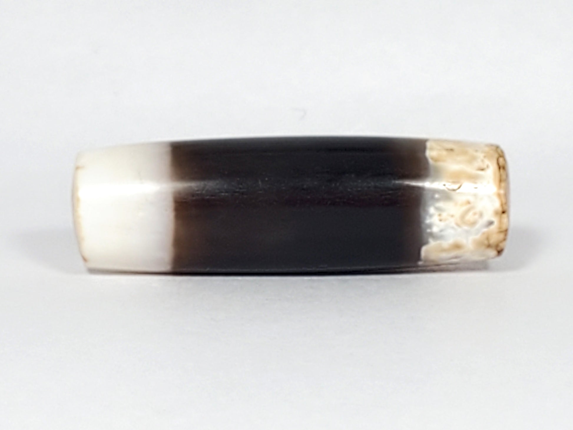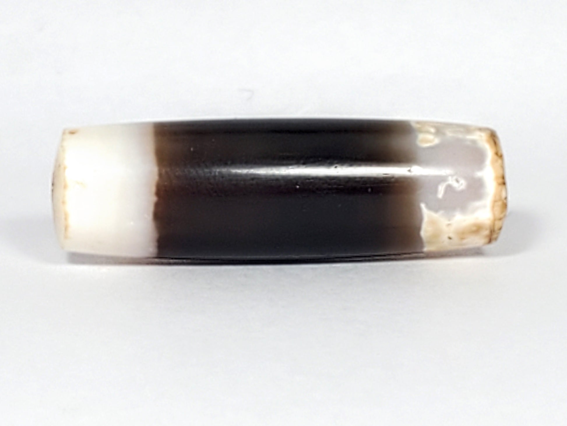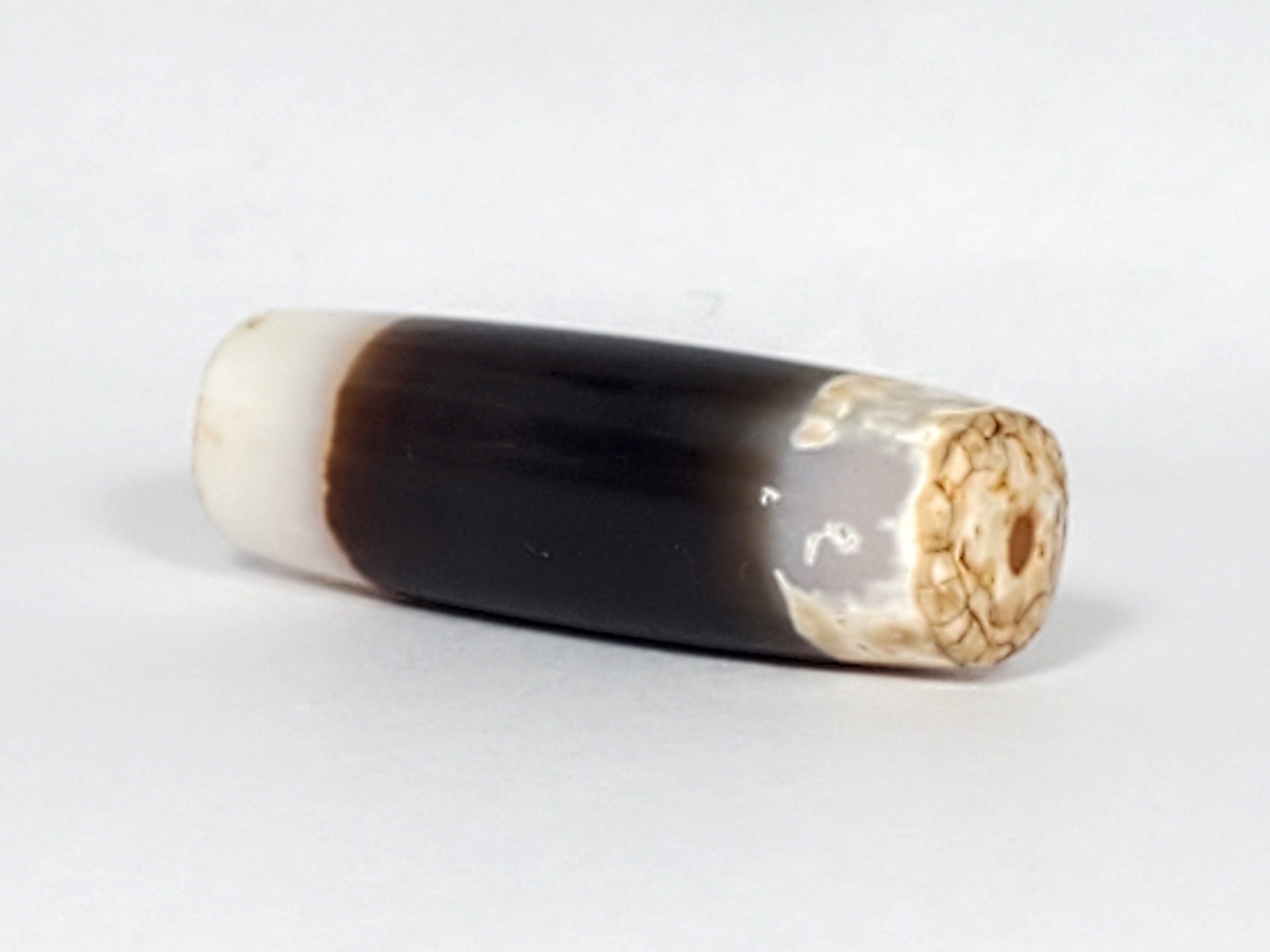 This piece is in excellent condition. There is calcification on one of the ends. As with all antique dzi beads, weathering marks and minor imperfections are all part of its beauty.
