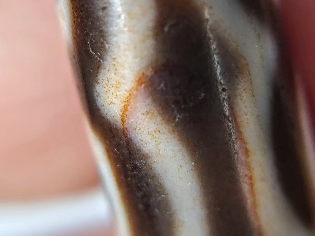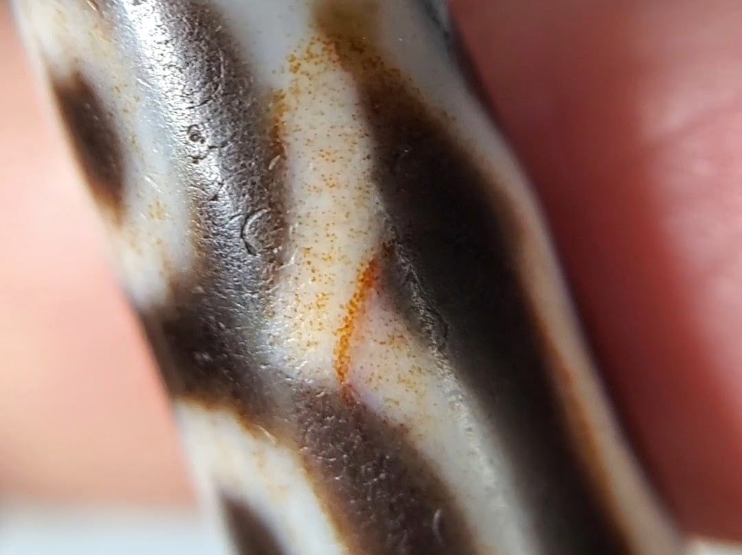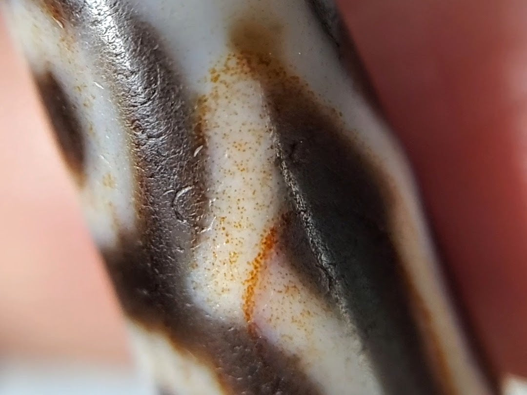 The color of the bloodspots on this dzi is a perfect vermillion.