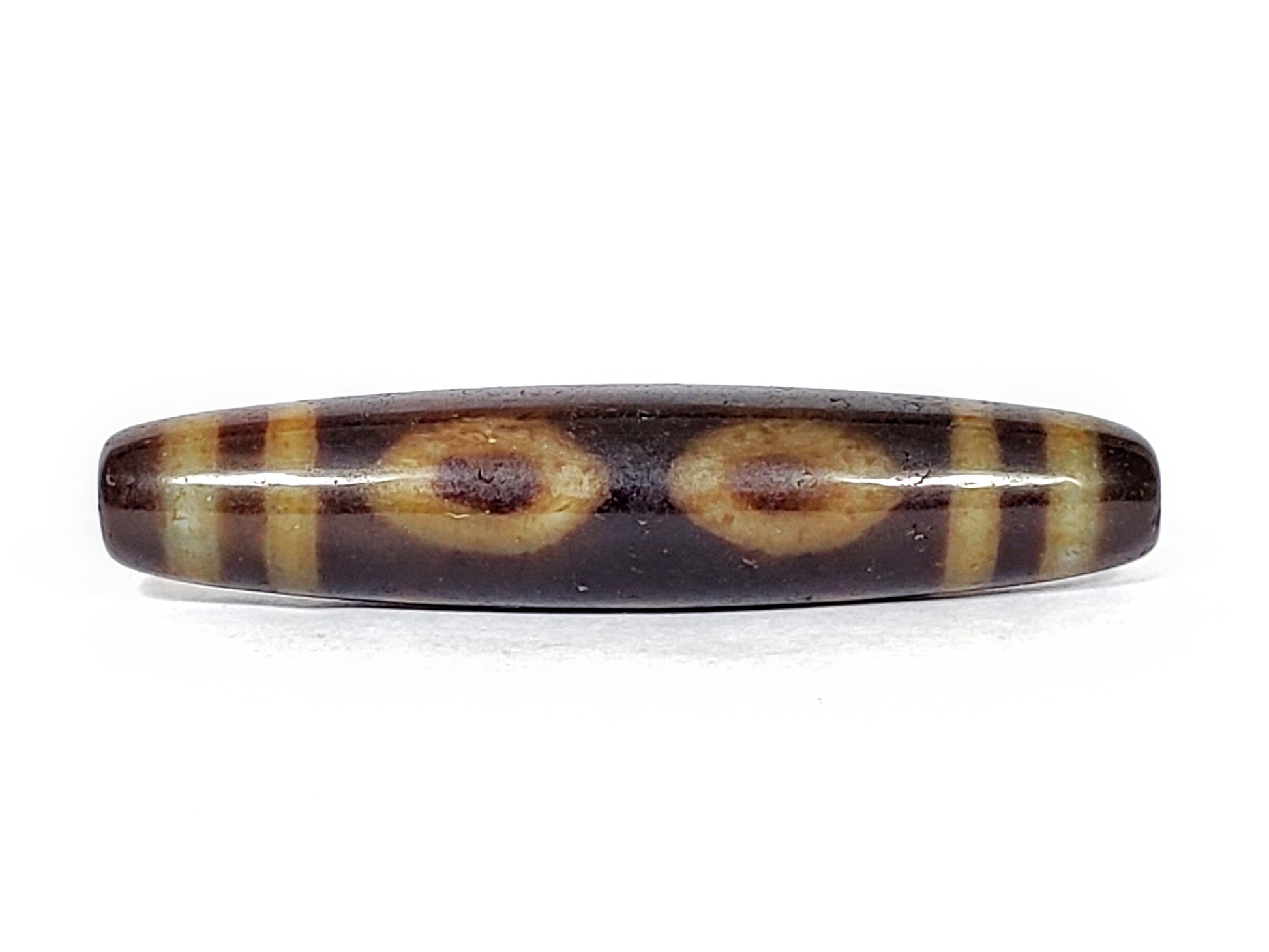 This bead is adorned with the Three Eye Motif. The Three Eye Motif is believed to bring happiness, success, and longevity to its wearer.