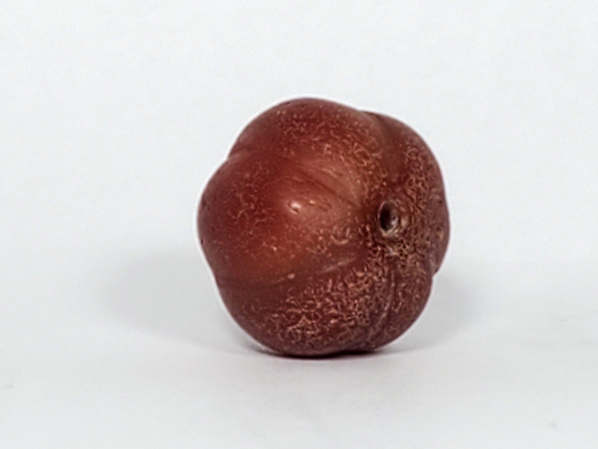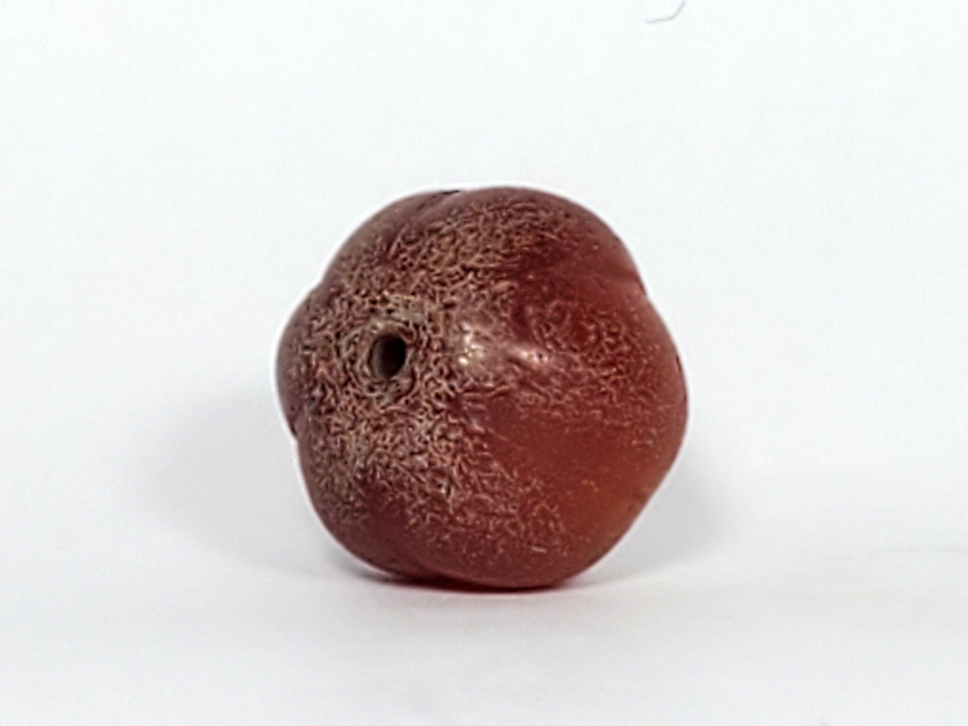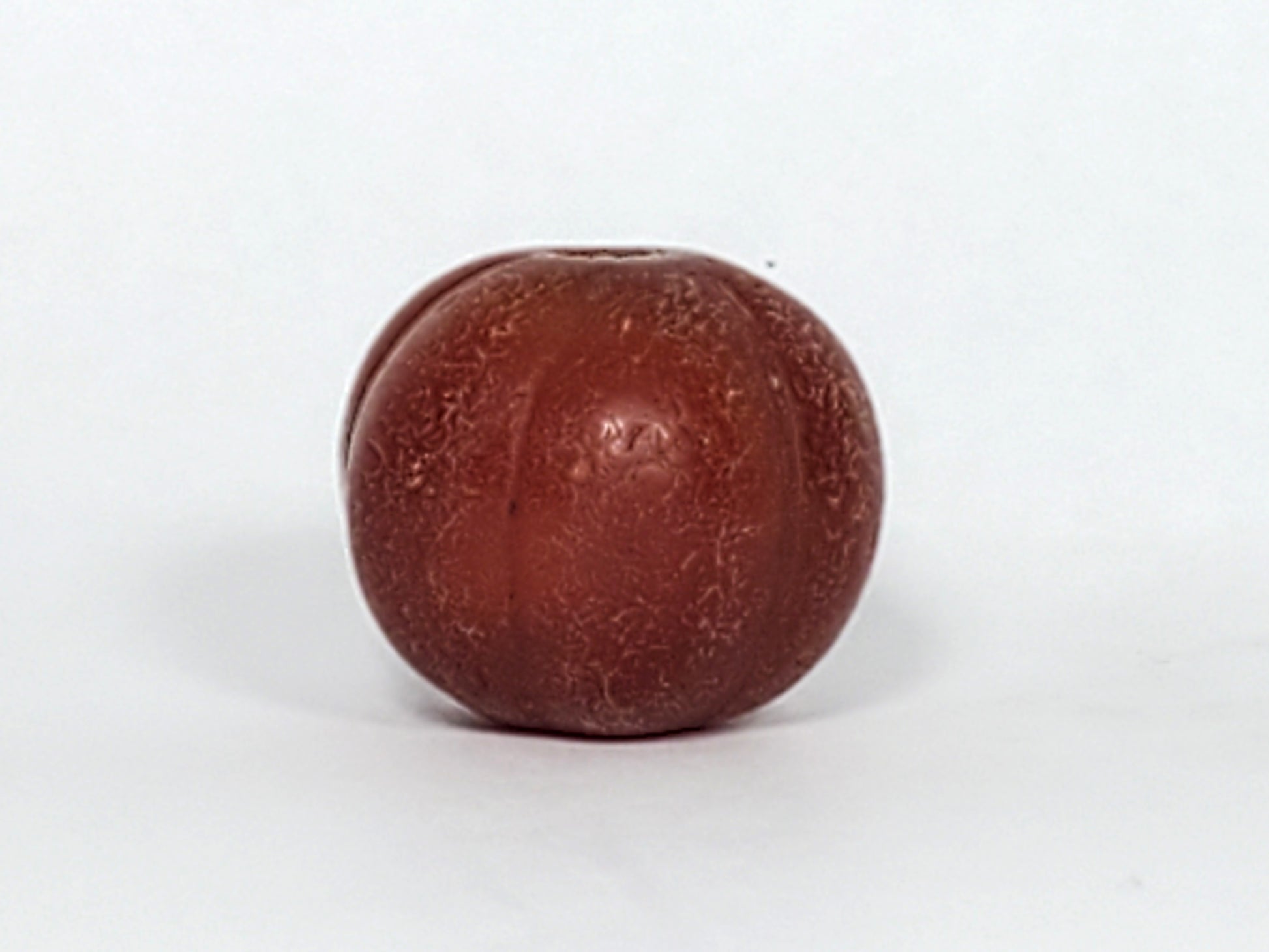 This pair of carnelian beads is fashioned in the shape of pumpkins. Pumpkins symbolize abundance, harvest, and generosity. It is believed the wearer would be blessed with abundance, which translates into wealth.