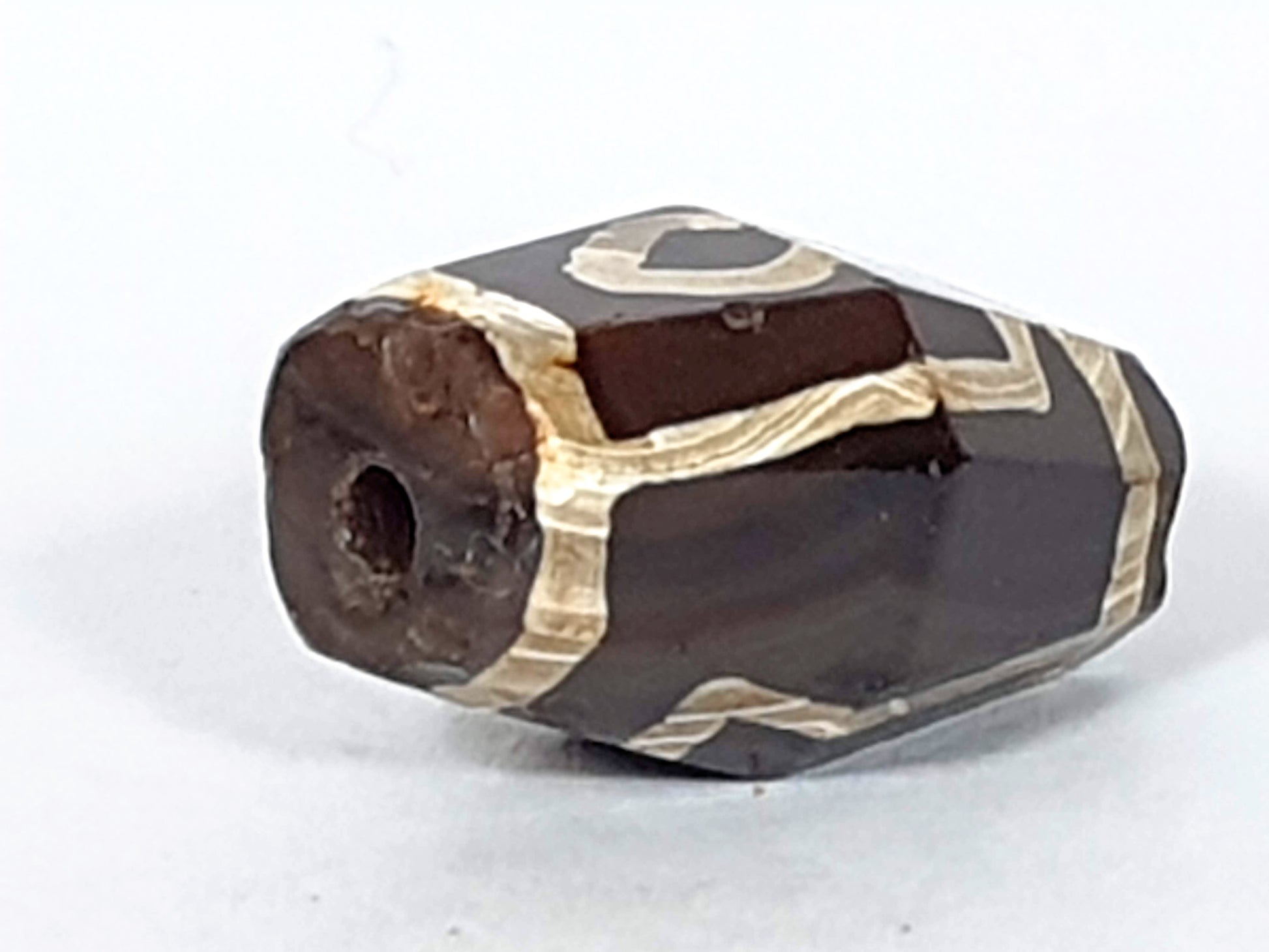 Antique Two Eye Motif Dzi - Rare Octagon Shape