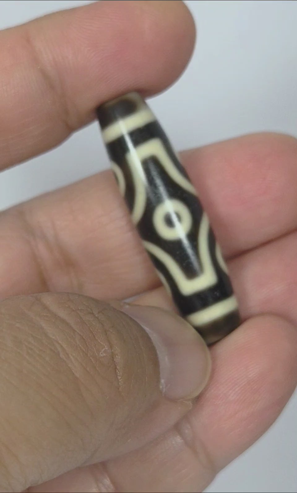 This dzi bead measures 41.2 mm x 11.1 mm. This bead is a newly crafted Taiwan dzi.