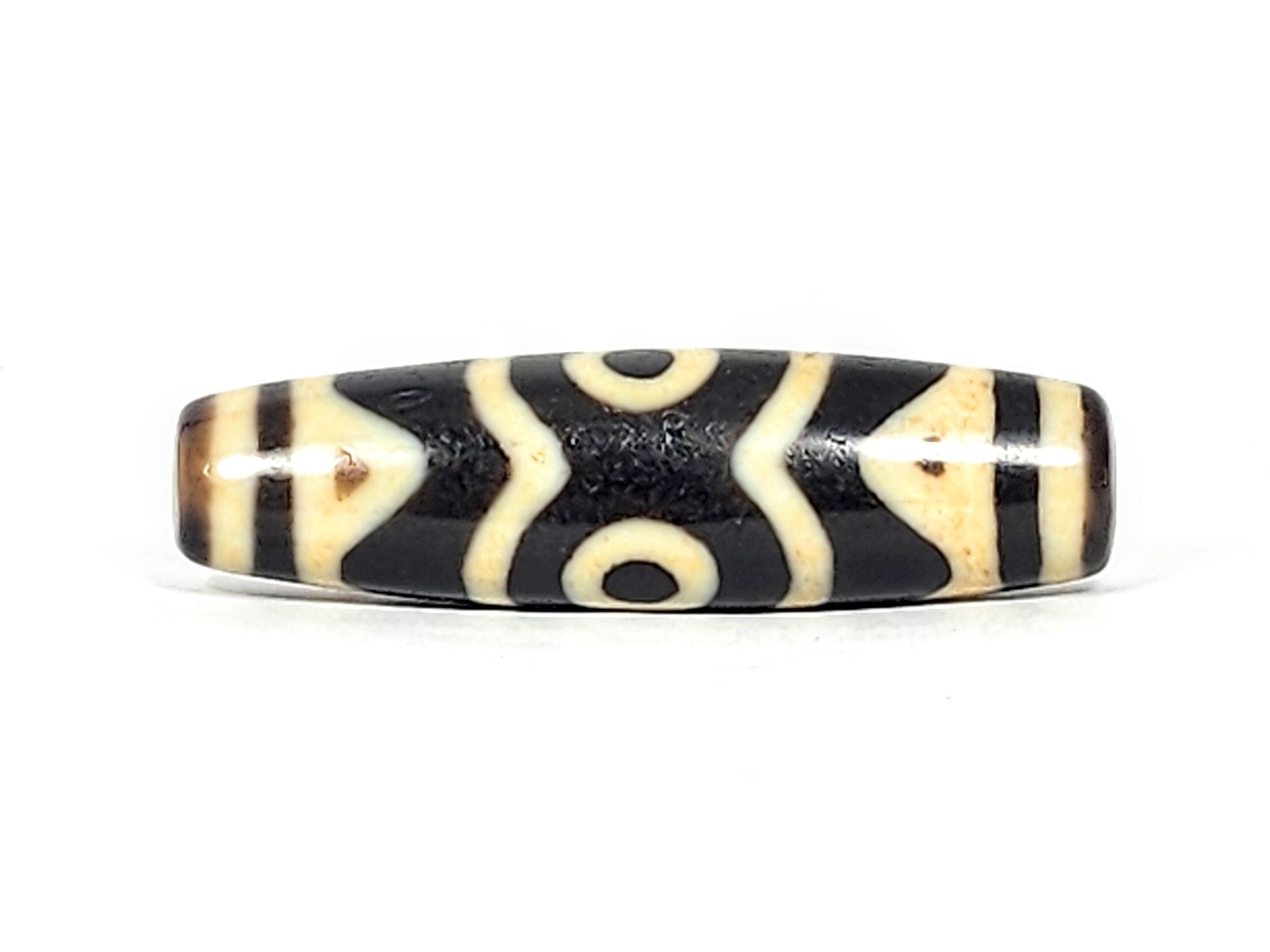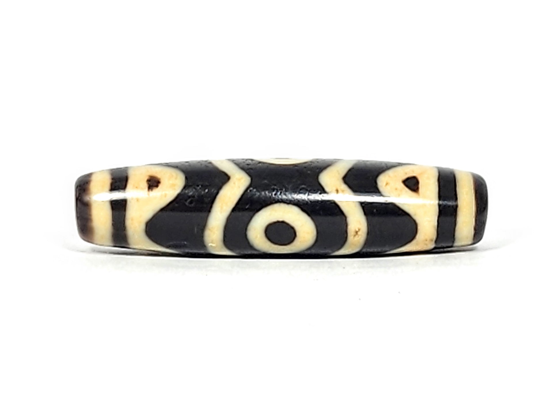 Antique Tibetan Three Eye & Tiger Tooth Motif Dzi Bead (012125) - Beautiful Dzi Bead