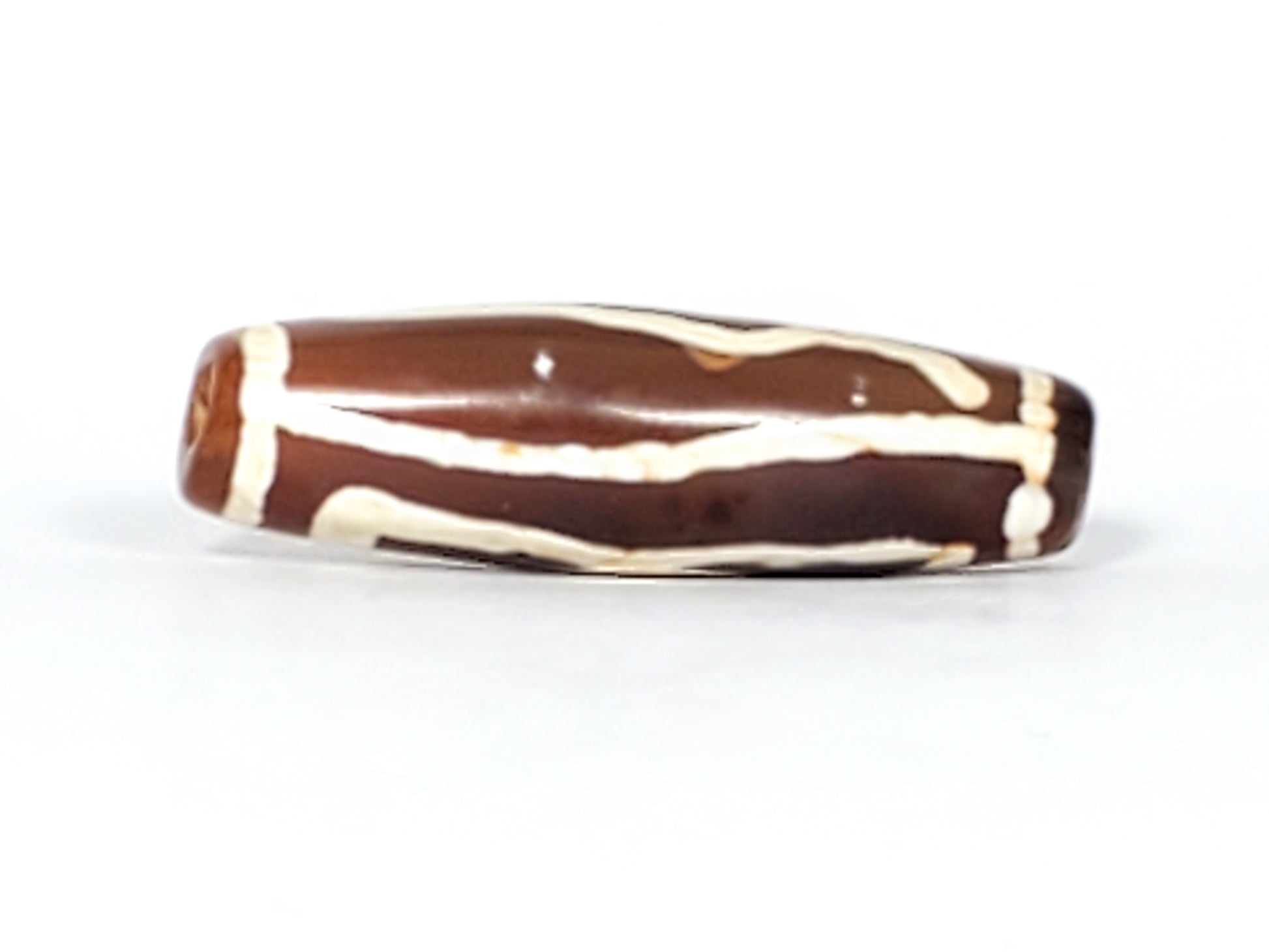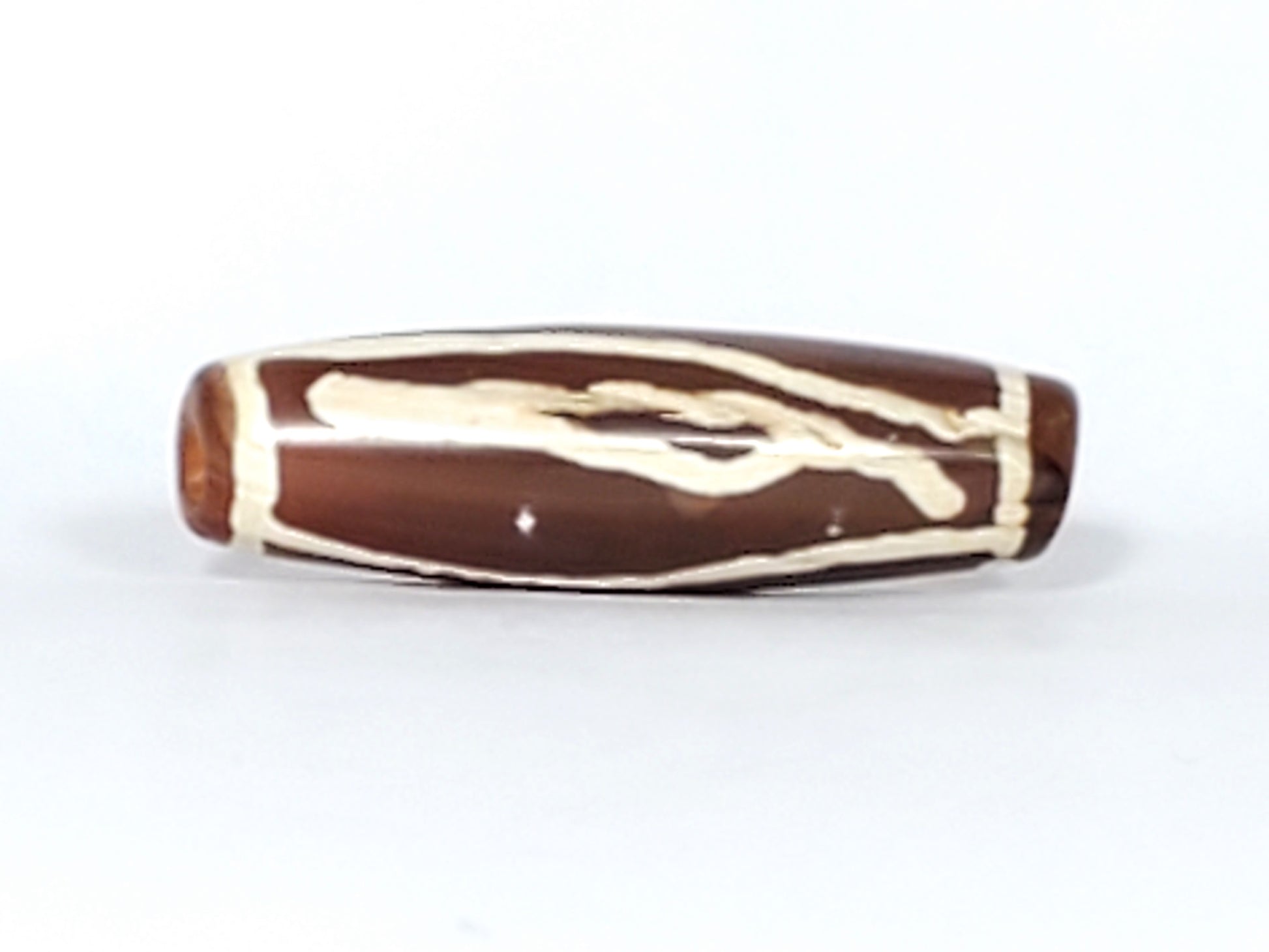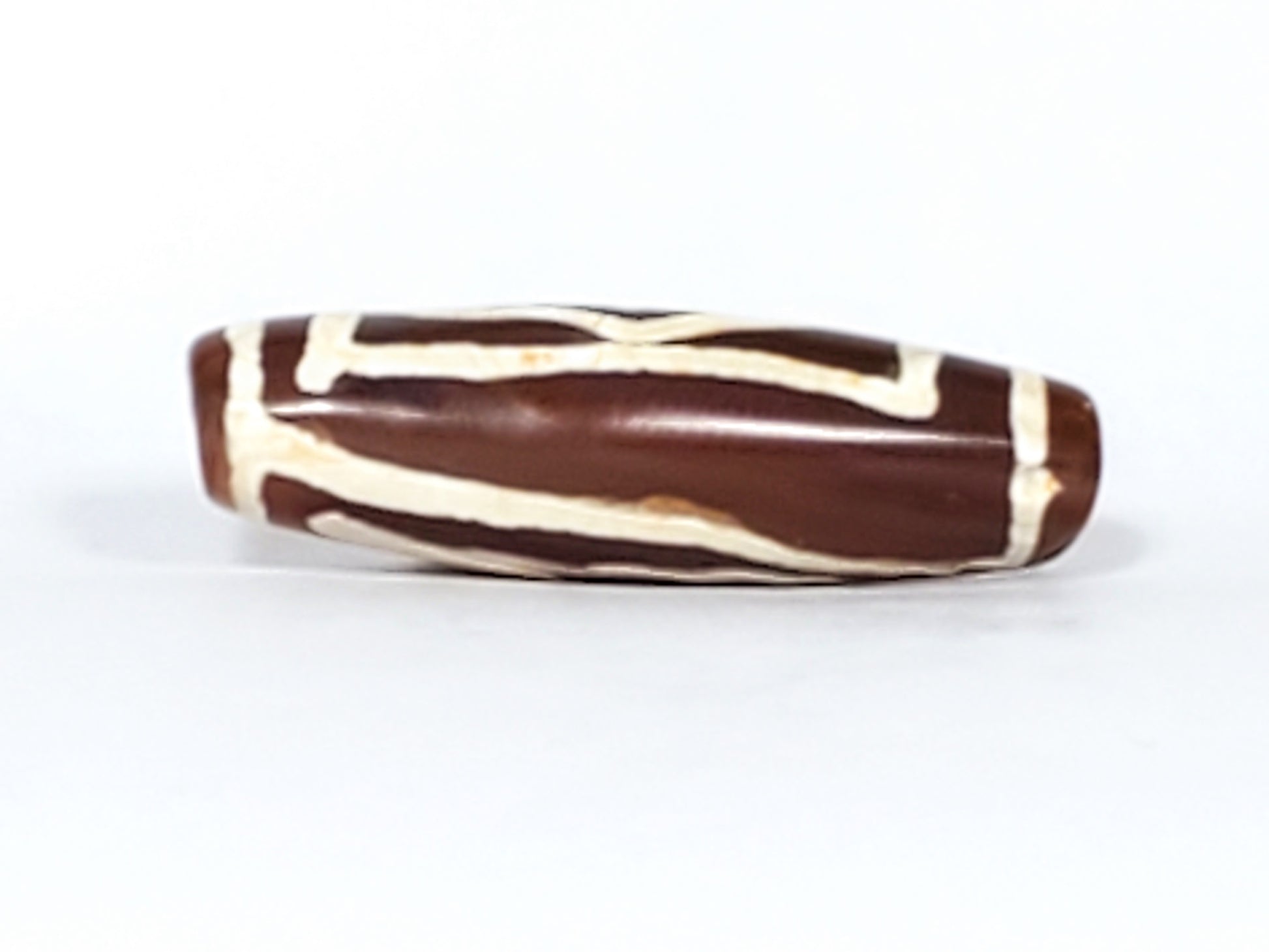 This bead measures 29.6 mm x 9.1 mm. It is an old bead, estimated to be between 200 to 500 years old.