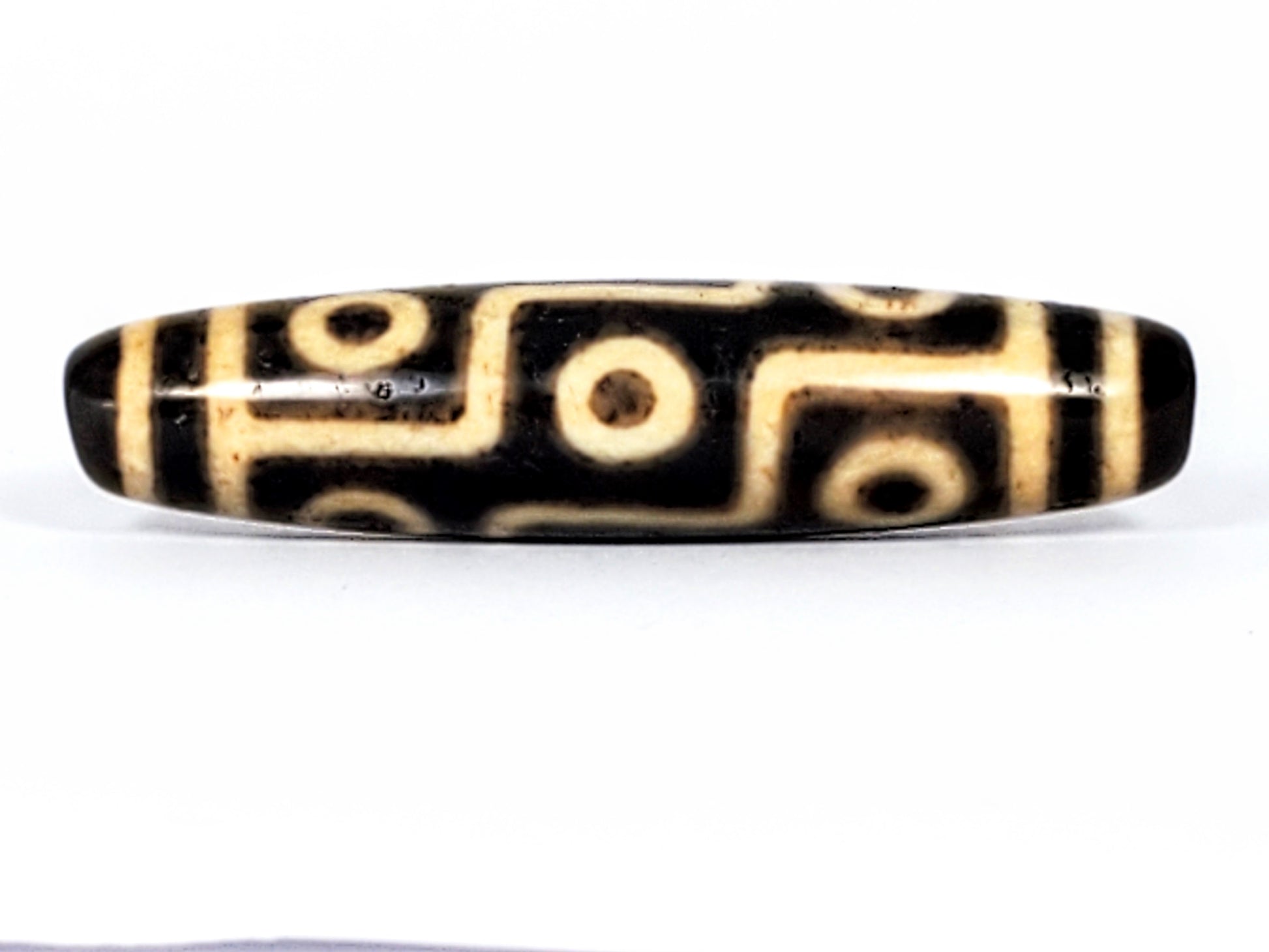This Dzi bead it adorned with the Nine Eye Motif. The Nine Eye Motif is the King of all Motifs. It is believed to be the most powerful of all dzi beads.