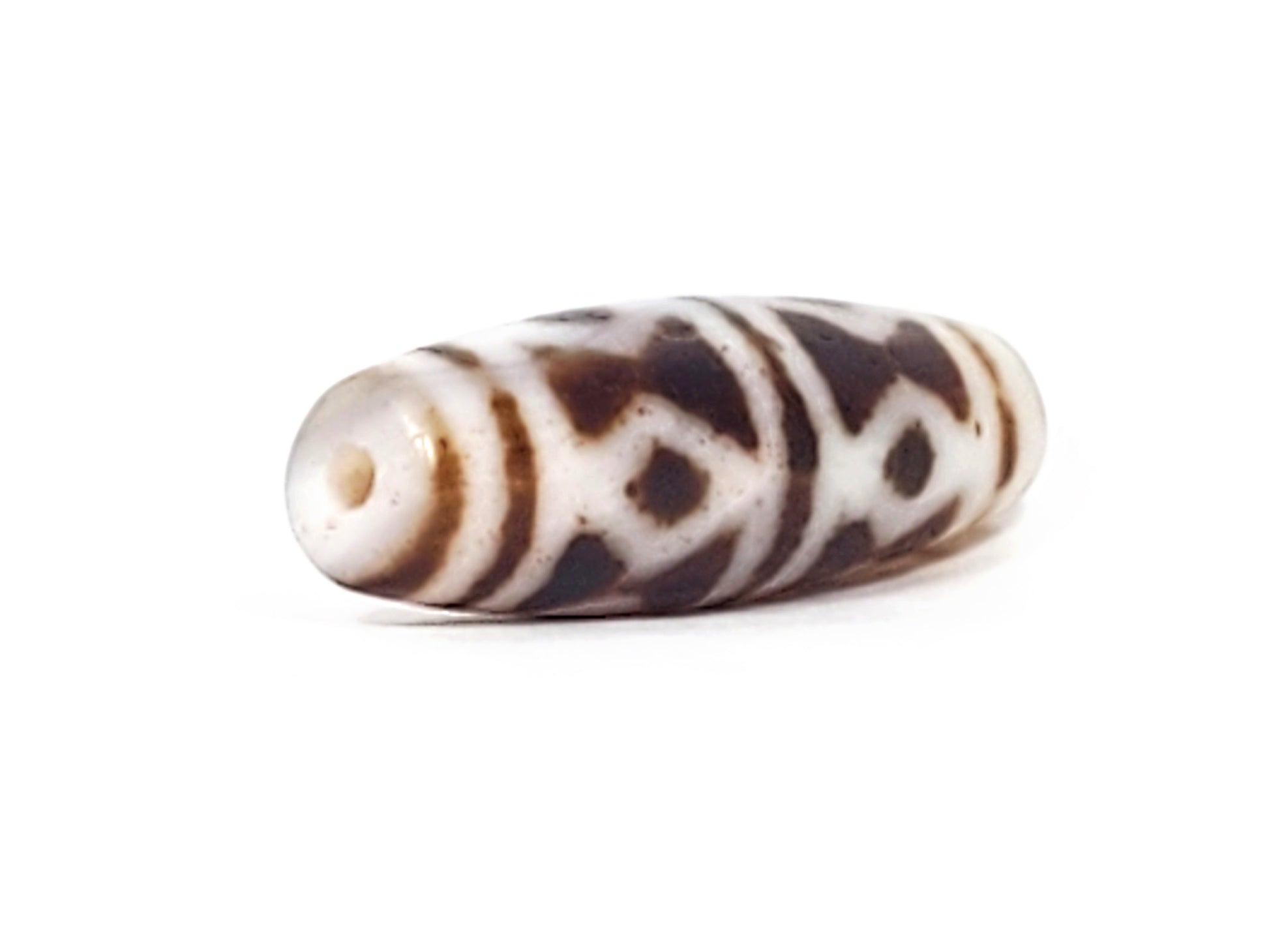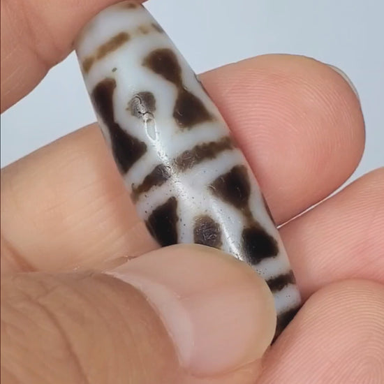 This piece is in excellent condition. There are no cracks on this bead. As with all antique dzi beads, weathering marks and minor digs are all part of its beauty.