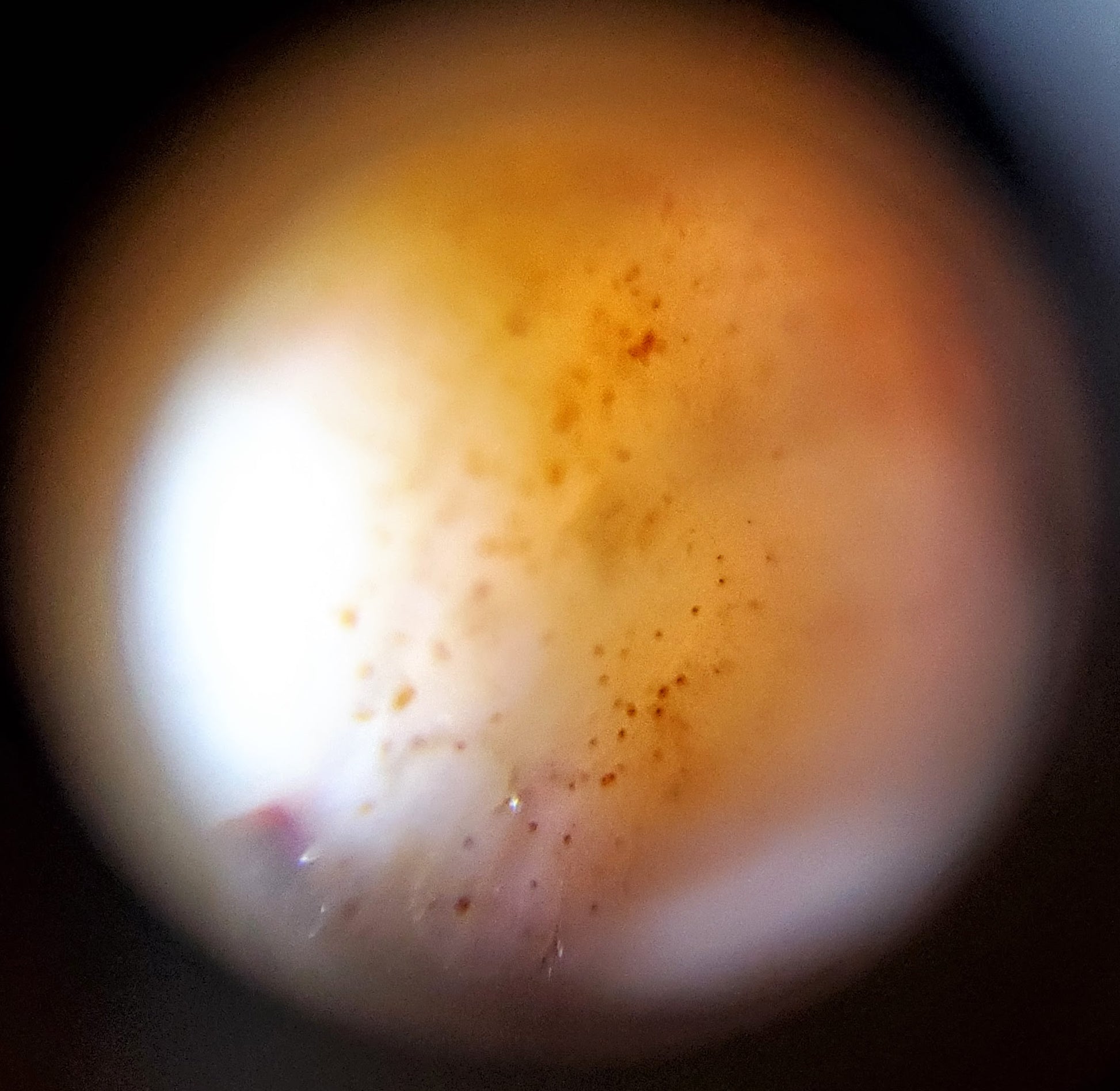 Cinnabar dots are also known as "bloodspots" or "硃砂" in Chinese. They occur when mercury and sulfur are present when the agate was formed. Mercuric sulfide (or cinnabar) is obtained when mercury reacts with sulfur. In its purest form, the color is a deep red. In fact, it is how vermilion pigment is made. However, it is difficult and rare to find it in its purest form in agate. The purest form, used to make vermillion, is usually obtained in labs where conditions can be controlled. In nature, there is usually other material present thus giving it slight variations in its redness.