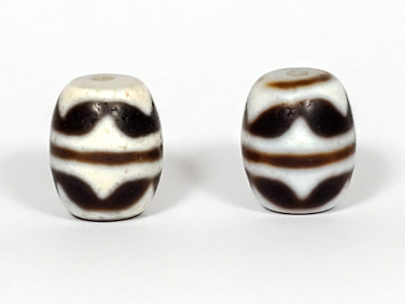 Pair of Vintage Double Tiger Tooth Motif Dzi Beads (TT-041122)