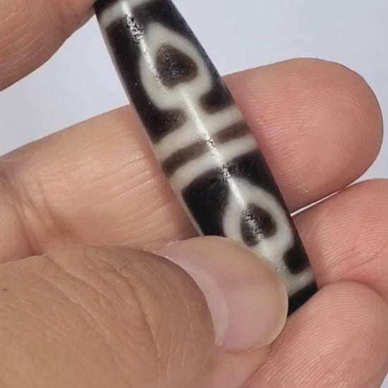 This dzi measures 46.9 mm x 11.9 mm. It is an old dzi bead, estimated to be between 800 to 1000 years old.
