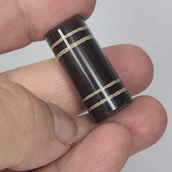 Antique Four Stripe Motif Dzi Bead - Barrel Shape