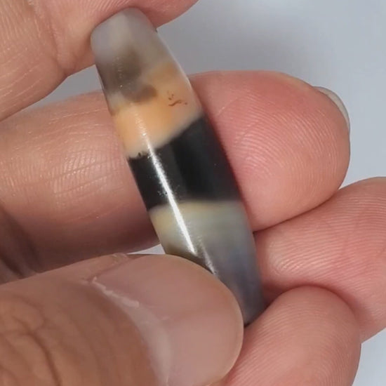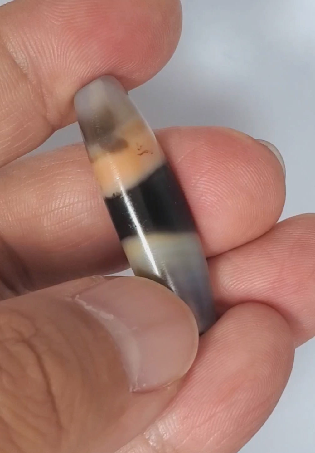 This dzi is adorned with the Single Stripe motif. The Striped Motif is believed to bring never ending success and prosperity. Businessmen are especially fond of this motif.