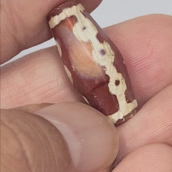 Ancient Links Motif Carnelian Dzi with Bloodspots (050725) - Rare Octagon Shape