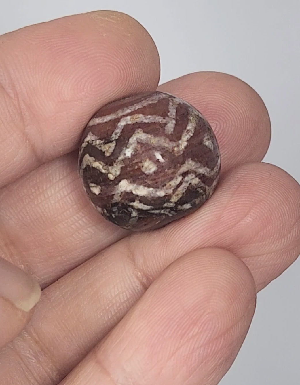 Ancient Round Tiger Stripe & Stars Motif Carnelian Dzi Bead (122224)