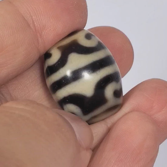 This piece is in excellent condition. There are no cracks on this bead. As with all antique dzi beads, weathering marks and minor digs are all part of the beauty.