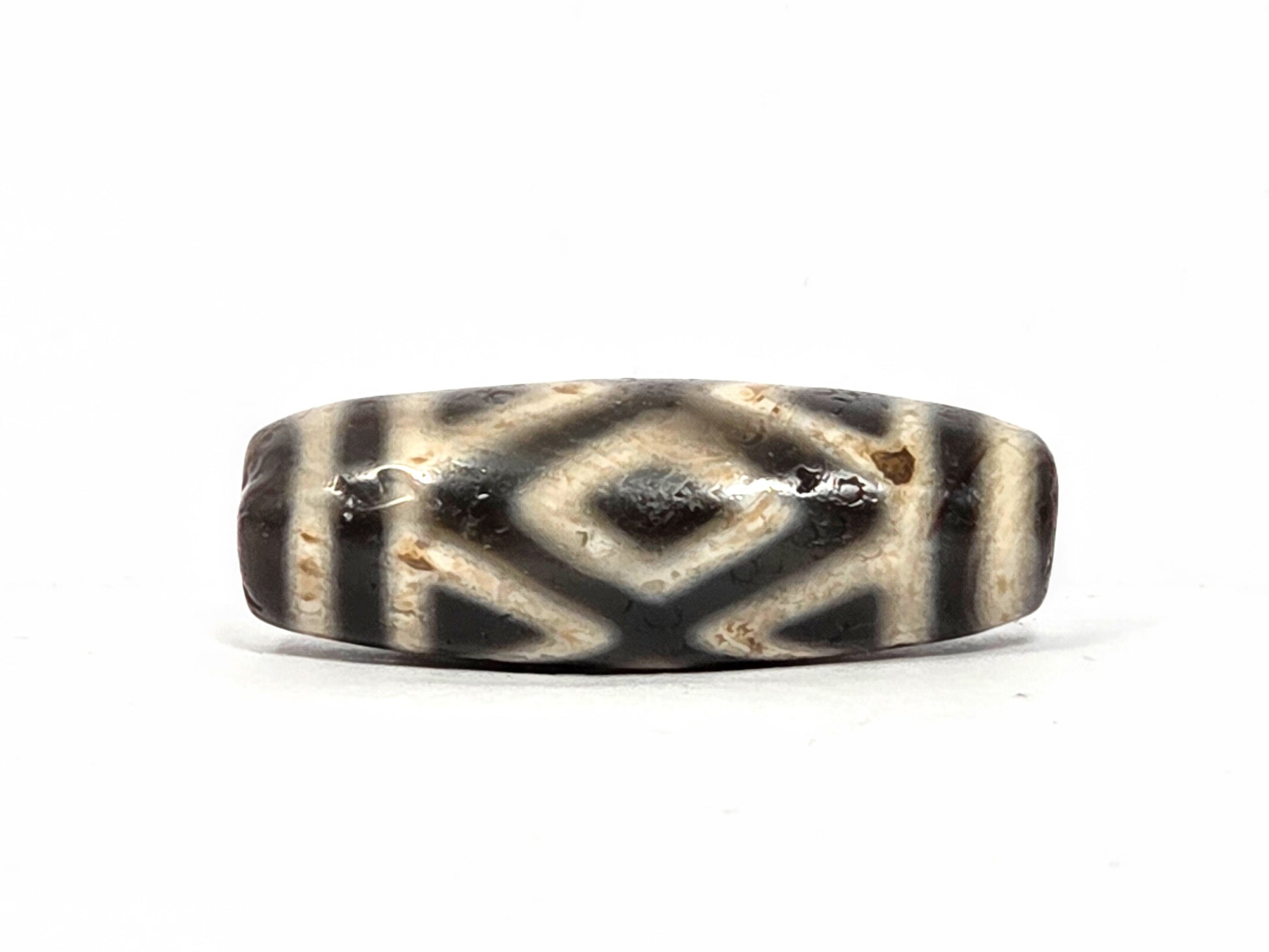 Ancient Tibetan Dzi Bead – Original Three Diamond Eye & Tiger Tooth Motif (122725)