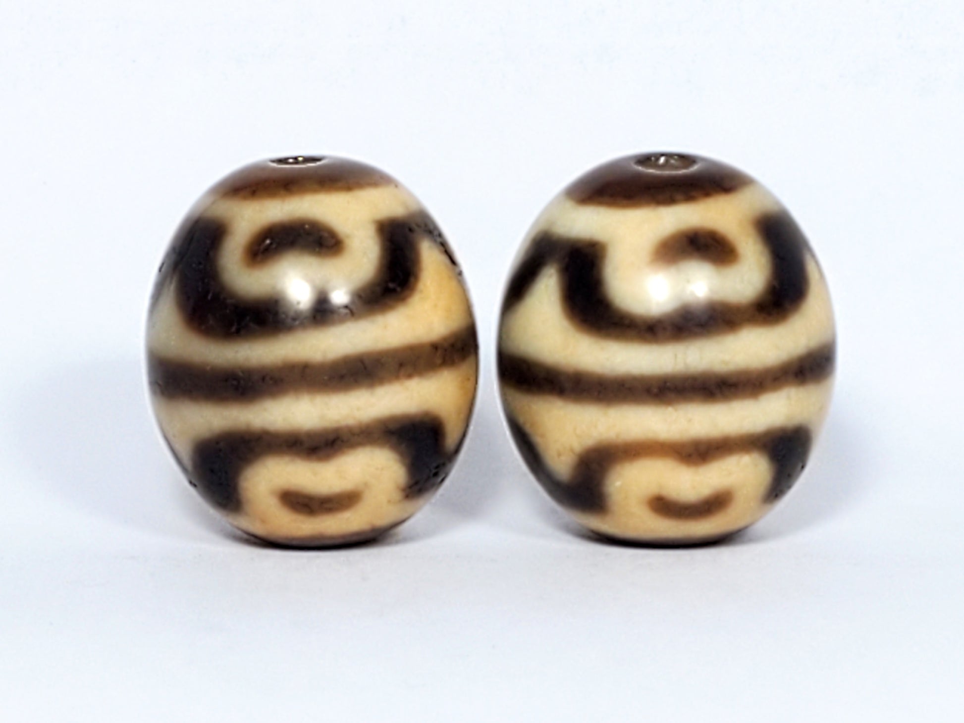 Pair of Round Tiger Tooth & Lotus Dzi Beads (R-TTL-011324)
