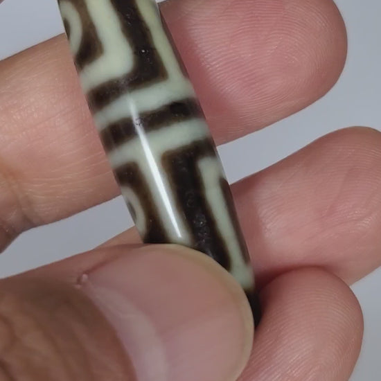This piece is in excellent condition. There are no cracks on this bead. As with all antique dzi beads, weathering marks and minor digs are all part of the beauty.